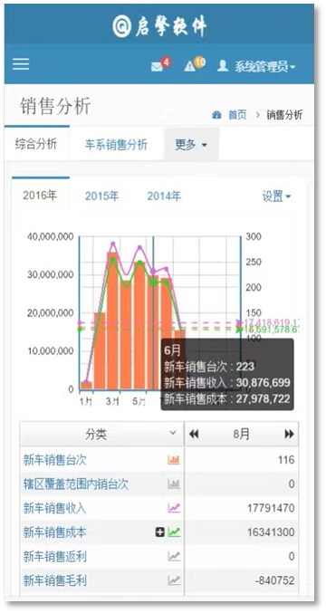 啟擎汽車智能分析BI系統(tǒng)V2.8通過詳盡的指標(biāo)體系,實(shí)時(shí)反映企業(yè)的運(yùn)行狀態(tài),將采集的數(shù)據(jù)形象化、直觀化、具體化,并于手機(jī)APP/PC/電視機(jī)等多種方式展示,便于管理層實(shí)時(shí)監(jiān)管